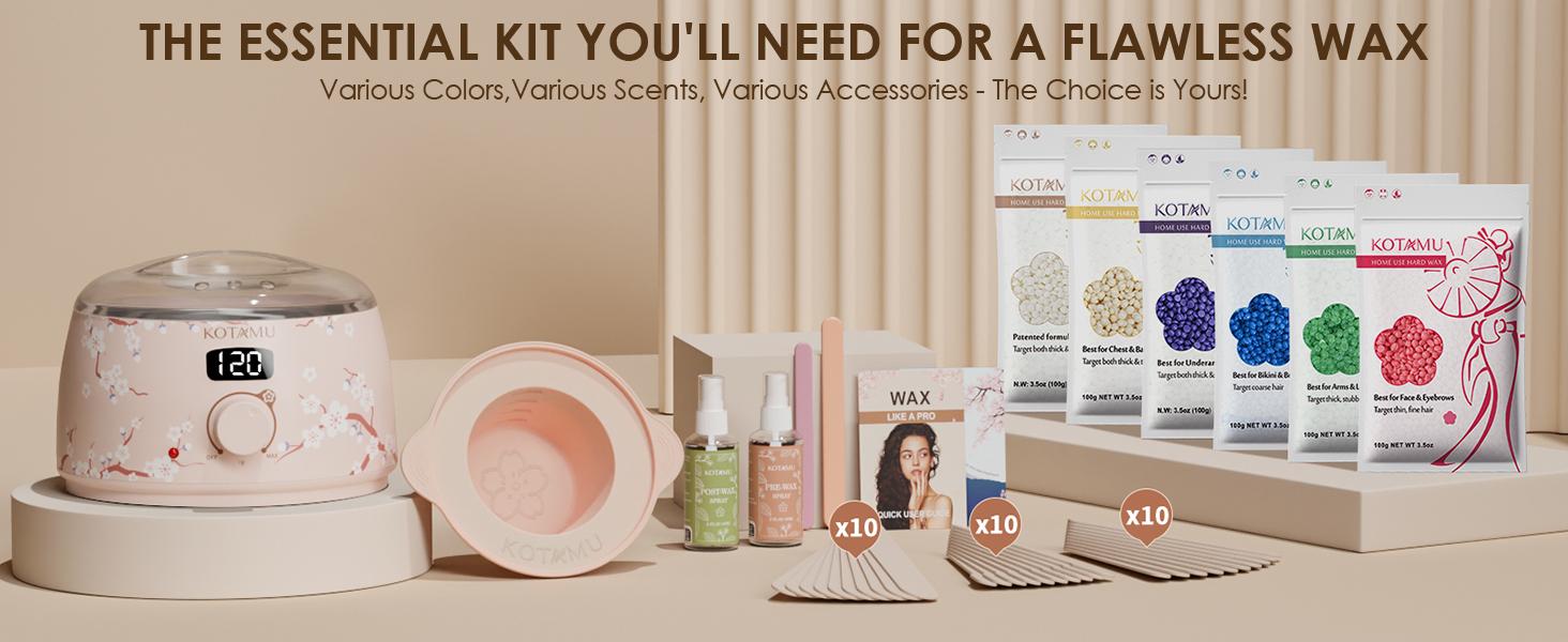 KOTAMU Waxing Kit for Women & Men, Wax Warmer for Hair Removal, Digital Wax Kit with Silicone Waxing Pot,Ideal for Face Eyebrow Arm Legs Armpit &Sensitive Skin, Purple Wax Machine With 44 Accessories